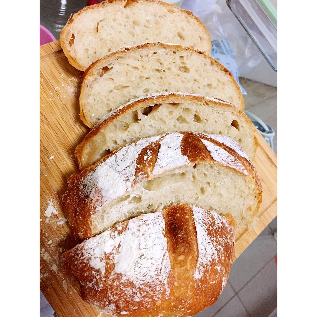 份量减半做的,特别有嚼劲的一个面包,可惜外皮不够脆,空洞也不太满意,割包也要多练习!