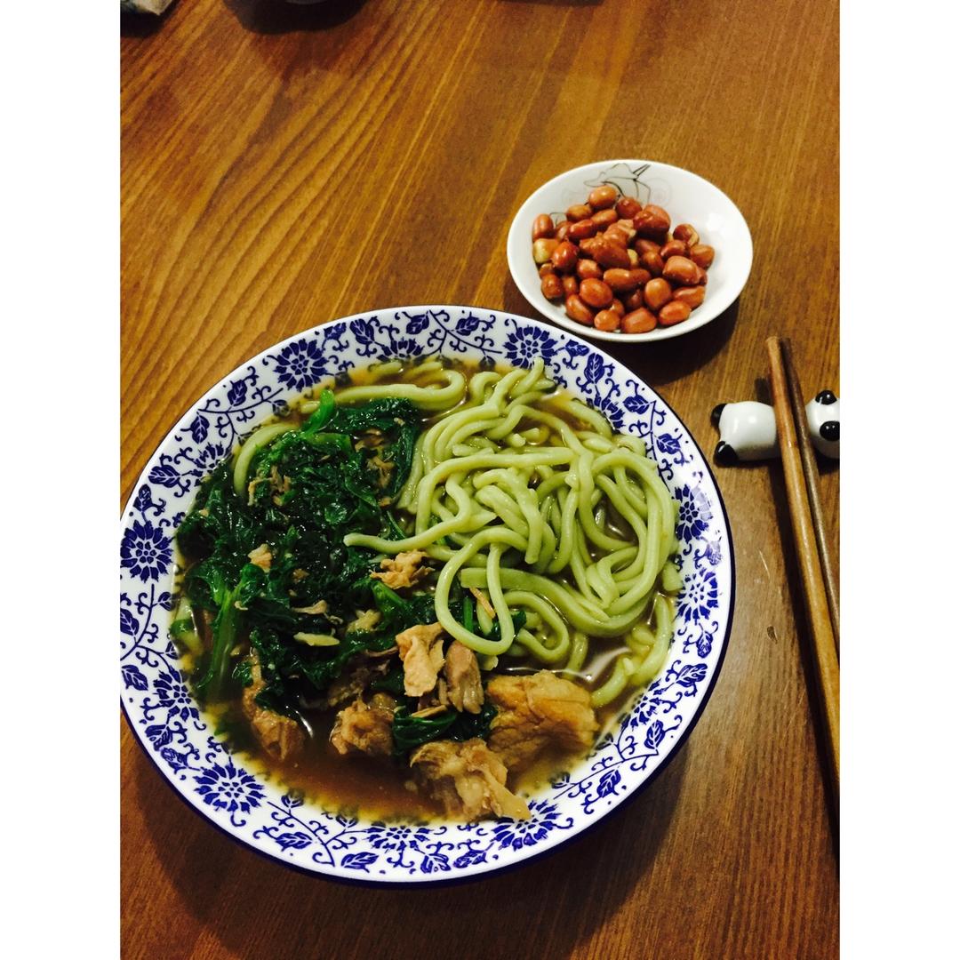棒骨头汤配上菠菜面