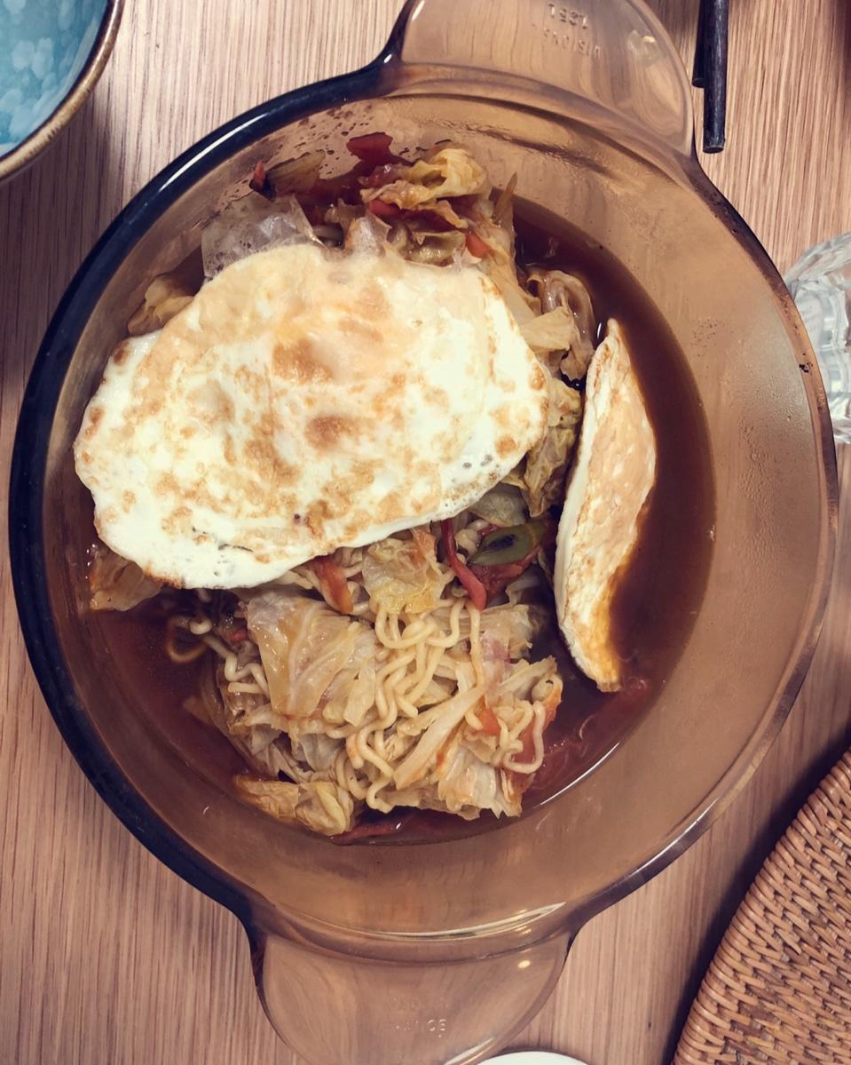抖音和一个自称北京健身比基尼冠军么小姐姐学的减脂餐,无油煎蛋,西红柿白菜…方便面……应该用荞麦面的,还应该加牛肉丸……临...