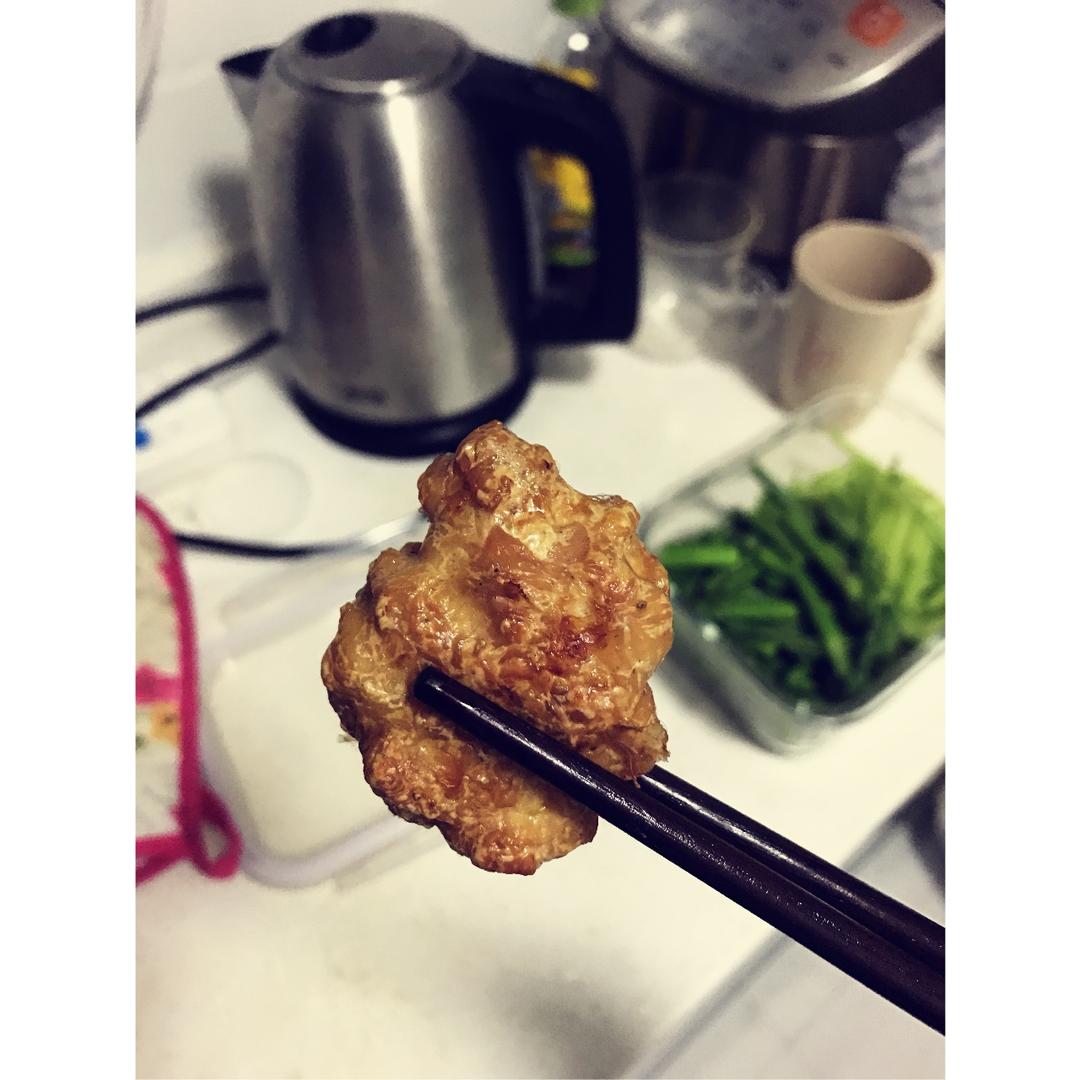 交个作业😊鸡肉没剁成蓉,都是大颗粒的,怕太干放了点油,事实证明还是放少了还是挺干的。烤箱180度烤了三十分钟,中间翻了一...