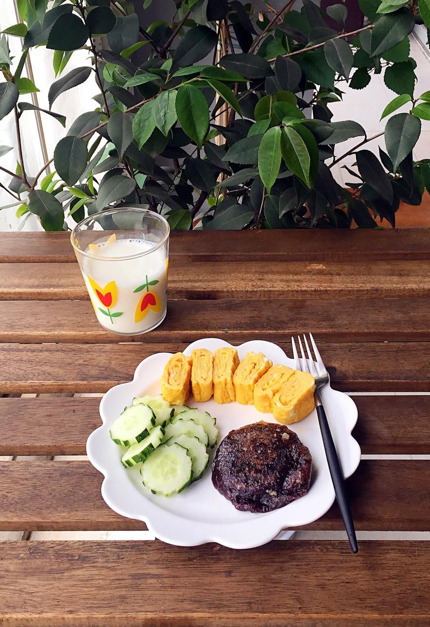 玉子烧.+糍粑+黄瓜+牛奶