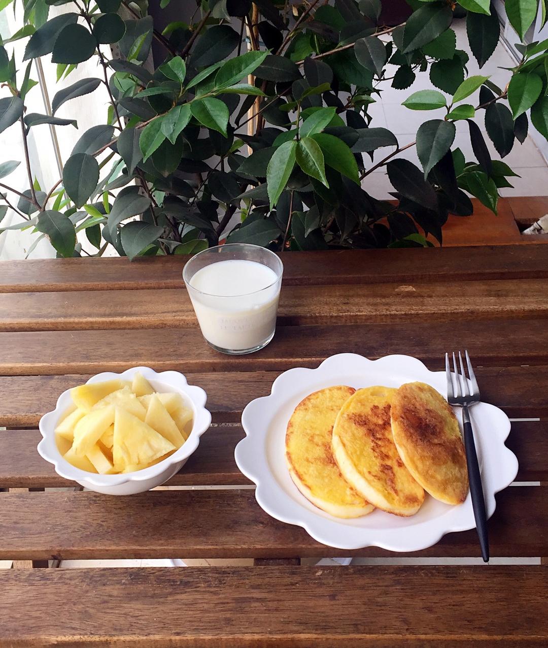 煎馒头山+牛奶+凤梨