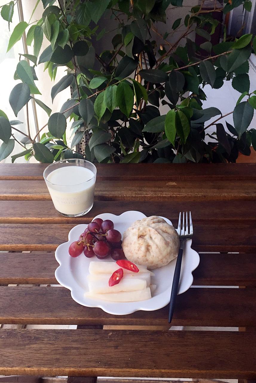 昨晚做了全麦肉包,还腌了萝卜。早上起来十分钟搞定早餐!