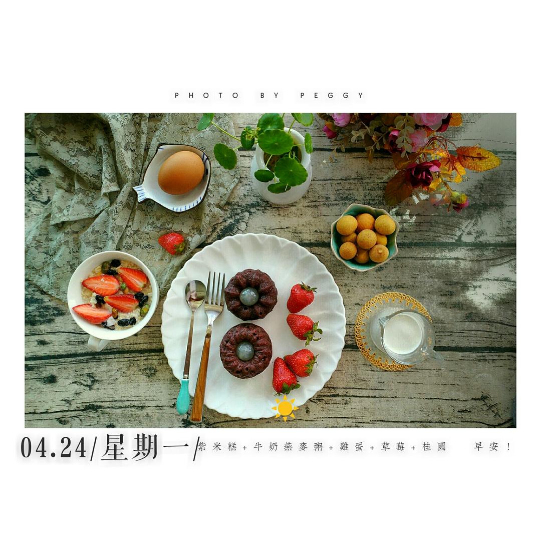 紫米糕+牛奶燕麦粥+鸡蛋