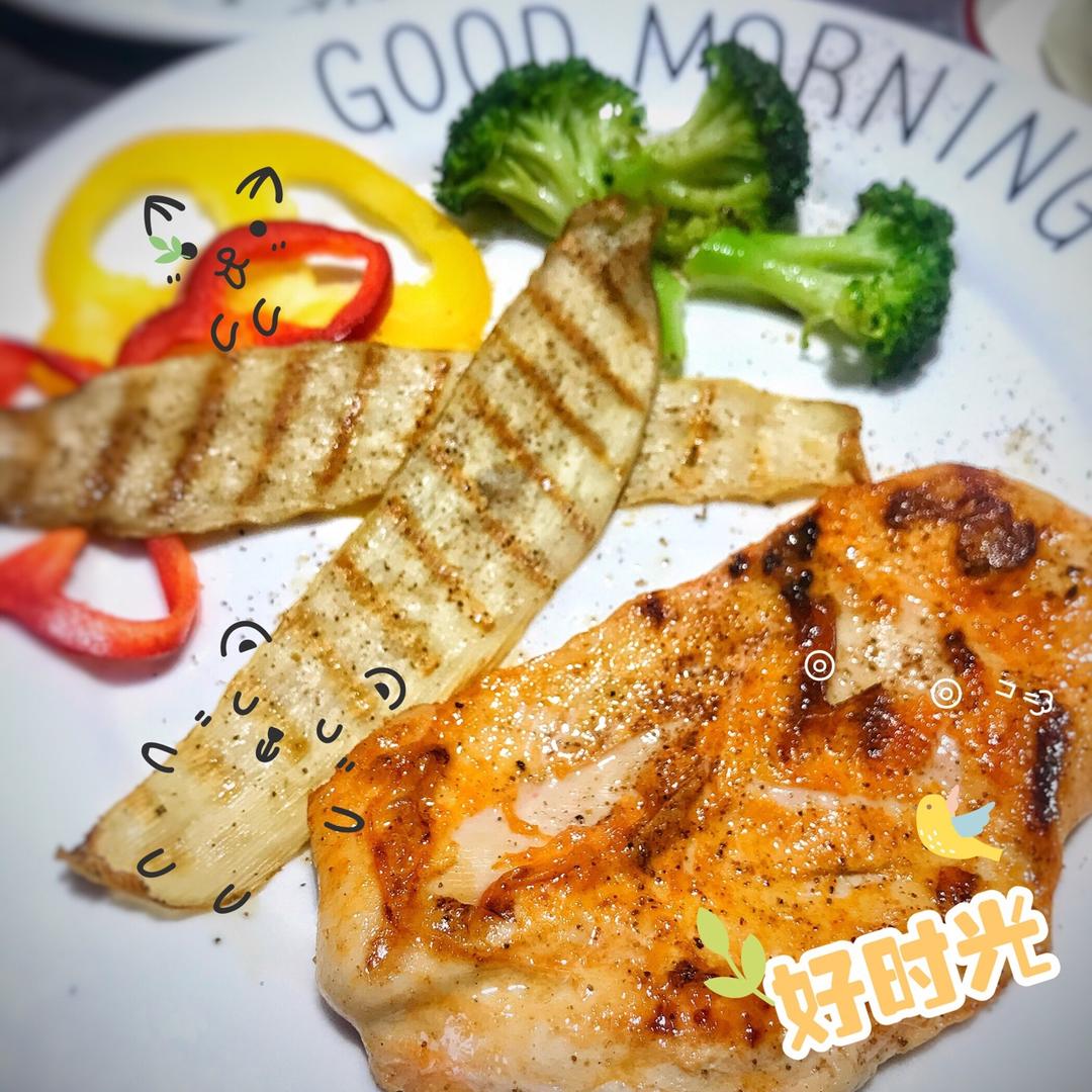 煎鸡排和杏鲍菇➕大包➕芋头