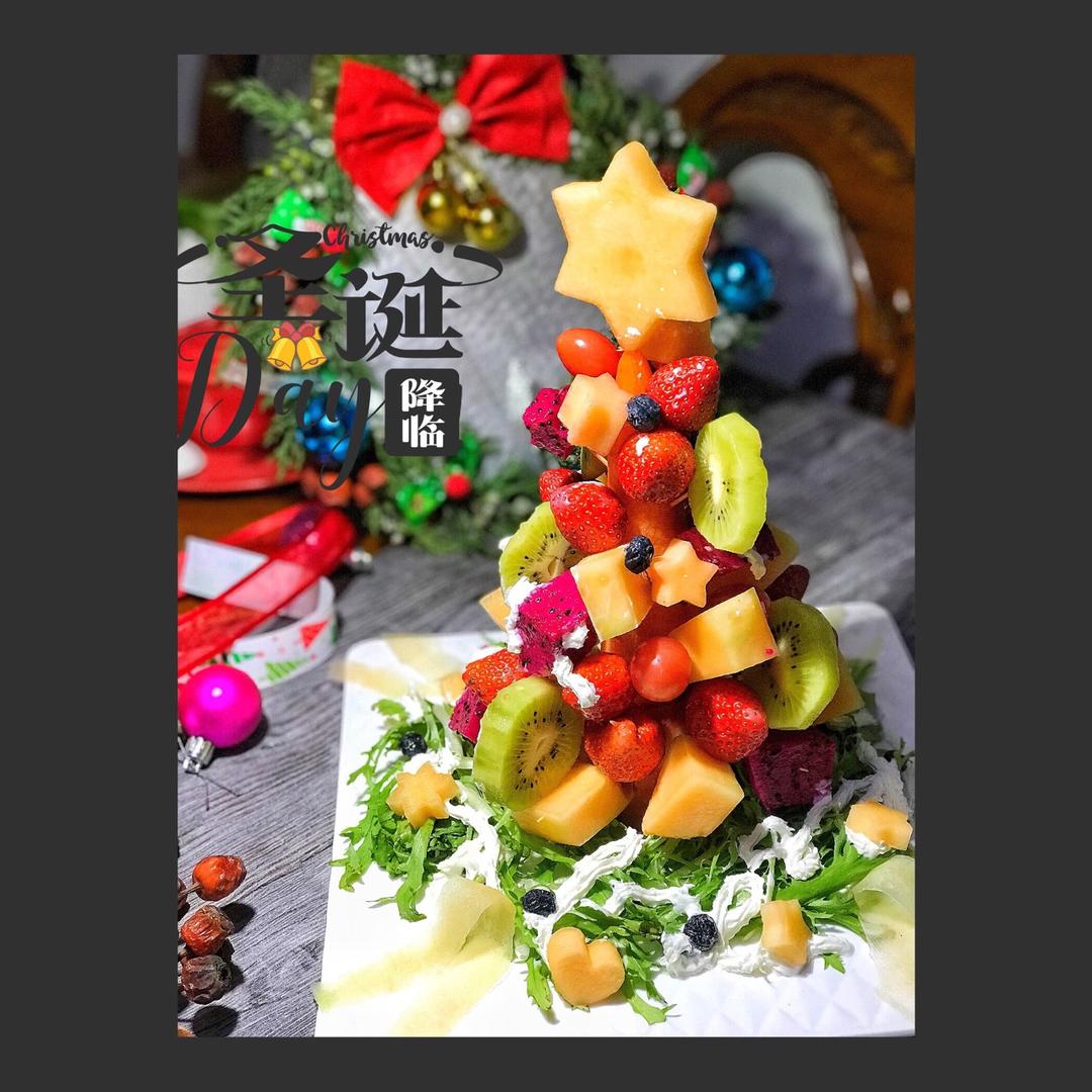 水果圣诞树,有点大葡萄就会很完美了,不完美留点念想,明年再做