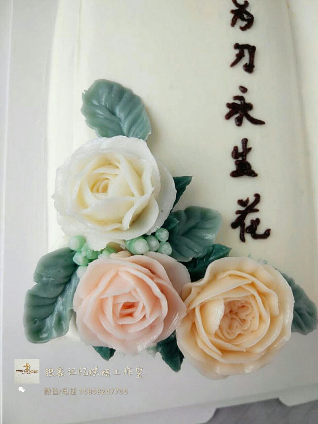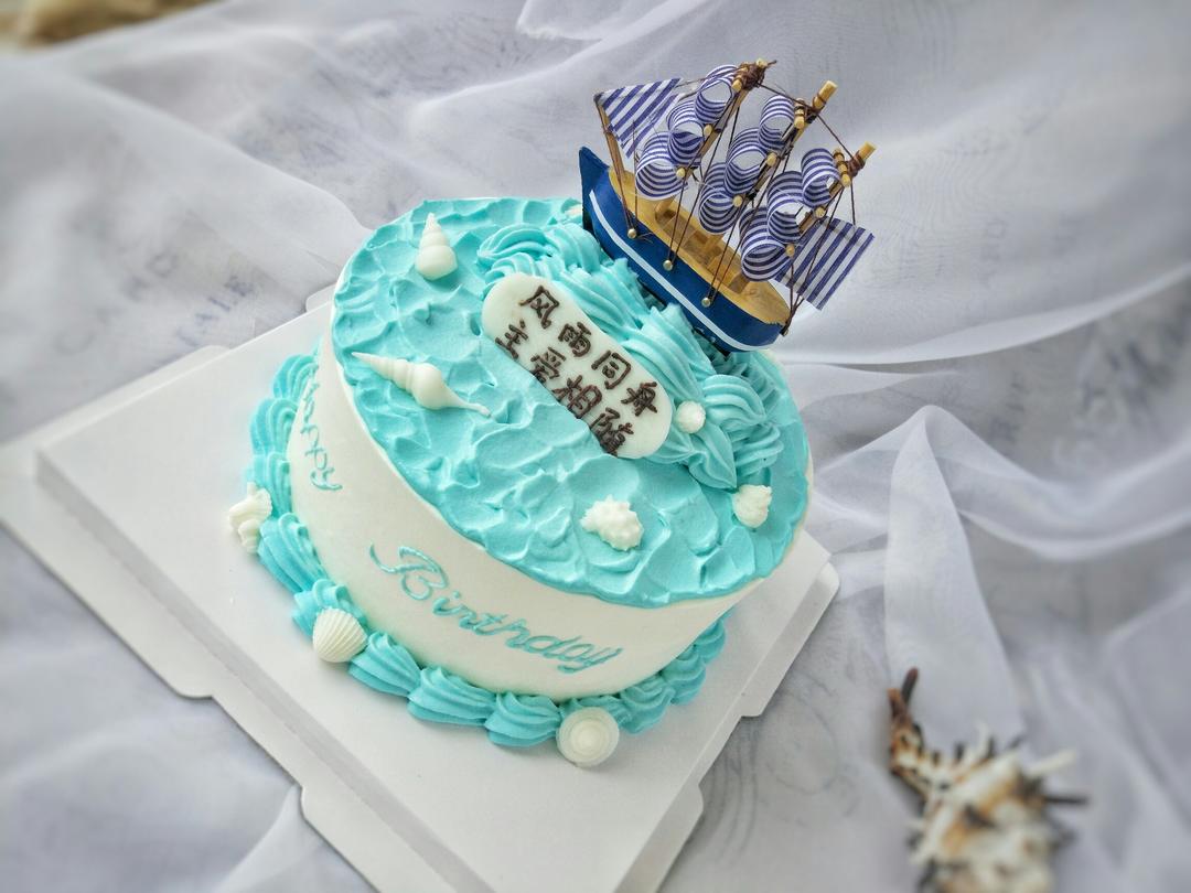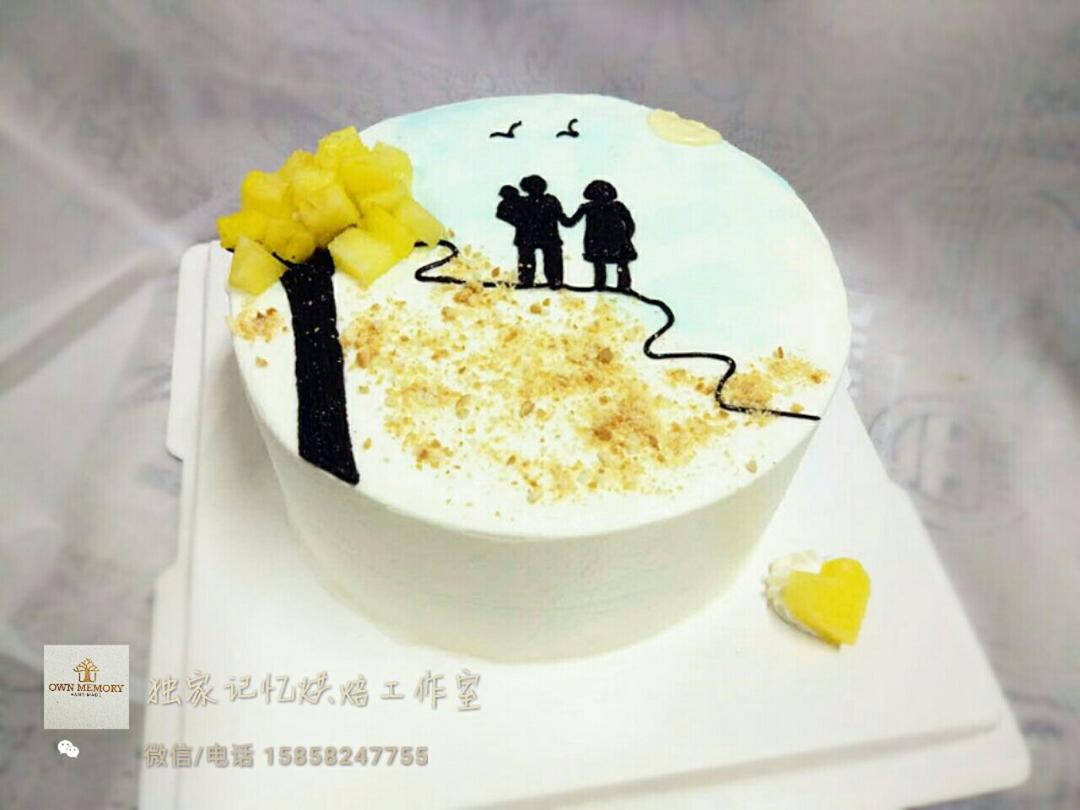 这是妻子送给丈夫的生日蛋糕,“风雨同舟,主爱相随”由客户定制。牵了手的手,今生一起走[爱心]。