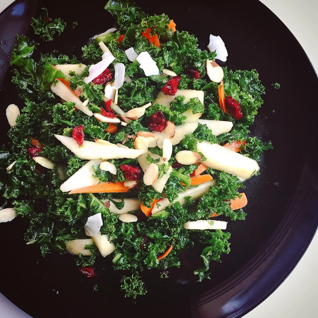 最爱的基础沙拉组合之一,kale苹果蔓越莓和油醋汁