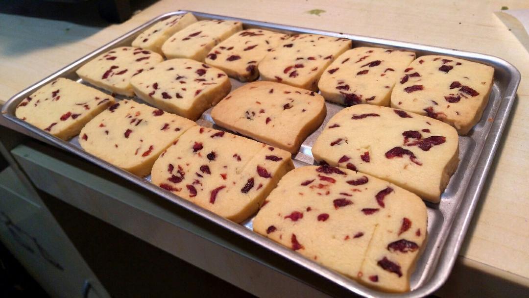 昨晚烤的蔓越莓曲奇,第一次烤,才知道黄油类饼干放凉了才最香!你敢相信这是在宿...