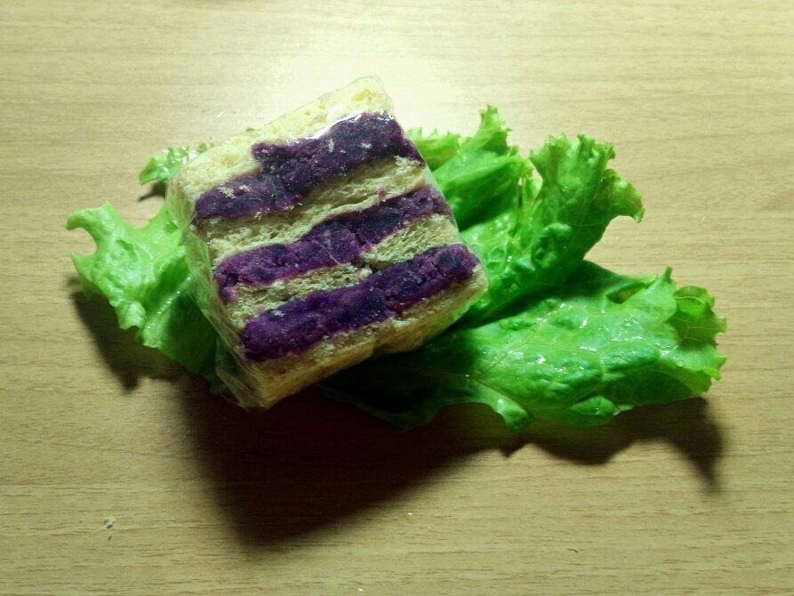 我爱轻食!本来想做紫薯土司香蕉卷,发现全麦土司太干卷不起来,遂改为叠叠乐!好...