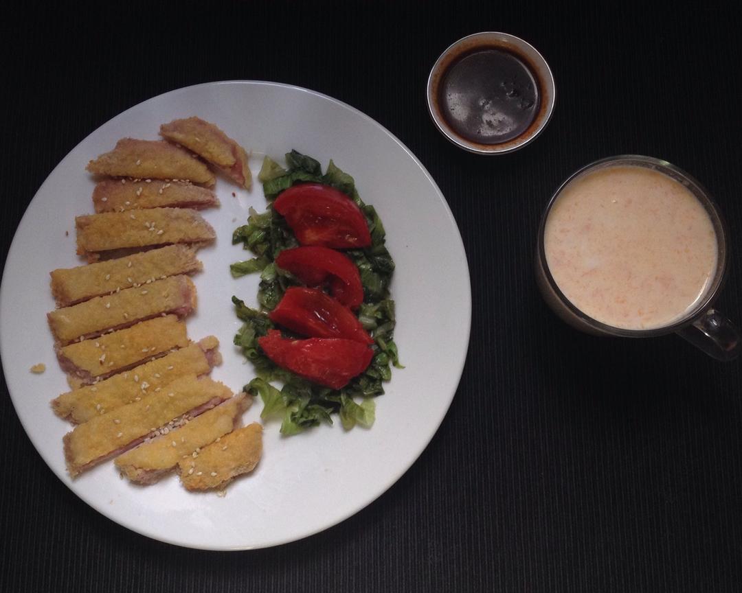 212/366 烤猪排+生菜+糖番茄+芒果牛奶西米露