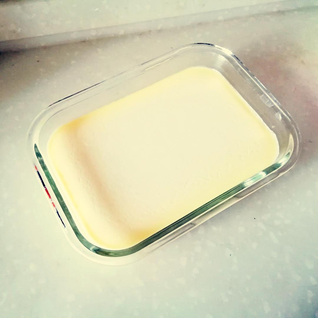 牛奶和淡奶油没有加热,直接全部放一起混合蒸熟的,边缘一层黄色的奶皮,吃起来好像卖的小孩子吃的...