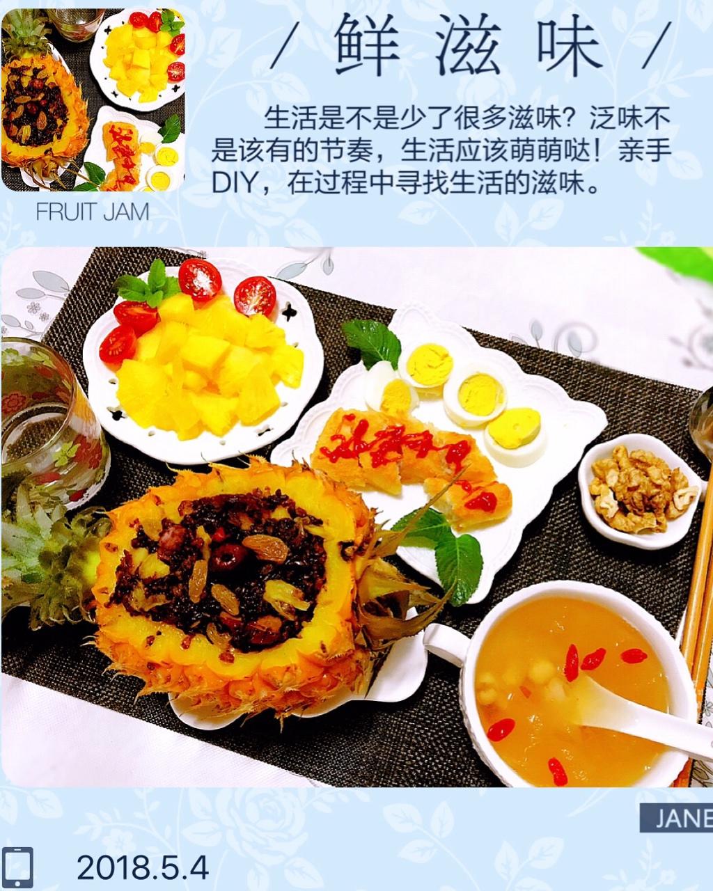 清蒸的菠萝八宝饭饭口感酸酸甜甜,清新飘香,就像青春的味道😝😝😝祝㊗️夏至未至的👧有一个美好如意的青春年华! #早餐•20...