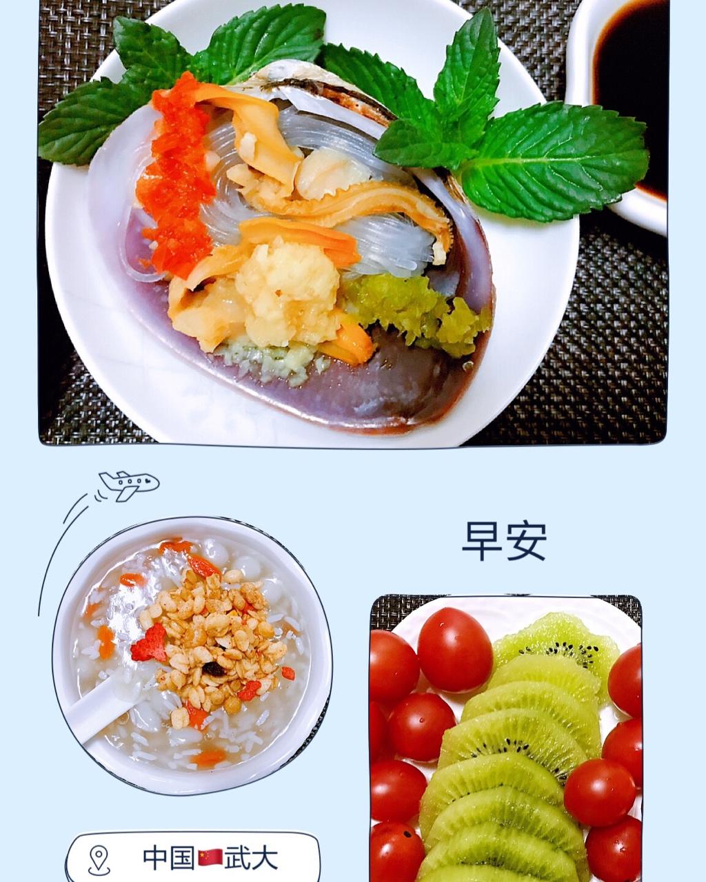 三鲜水饺+粉丝花蛤+米酒藕粉小汤圆+水果麦片+红枣核桃,带每日坚果🌰+水果+牛奶🥛 #...