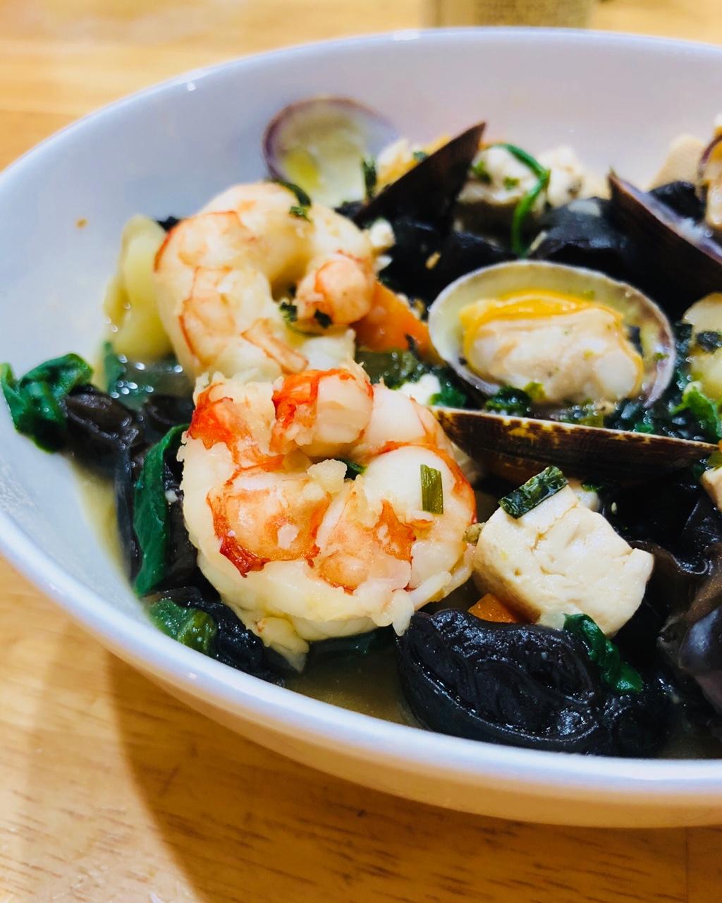 超棒的二人食,姐妹俩圣诞节减肥也是醉醉哒。替换了一点花蛤,搭配的深色蔬菜直接加到汤里,味道非常棒! #晚餐•2017年1...