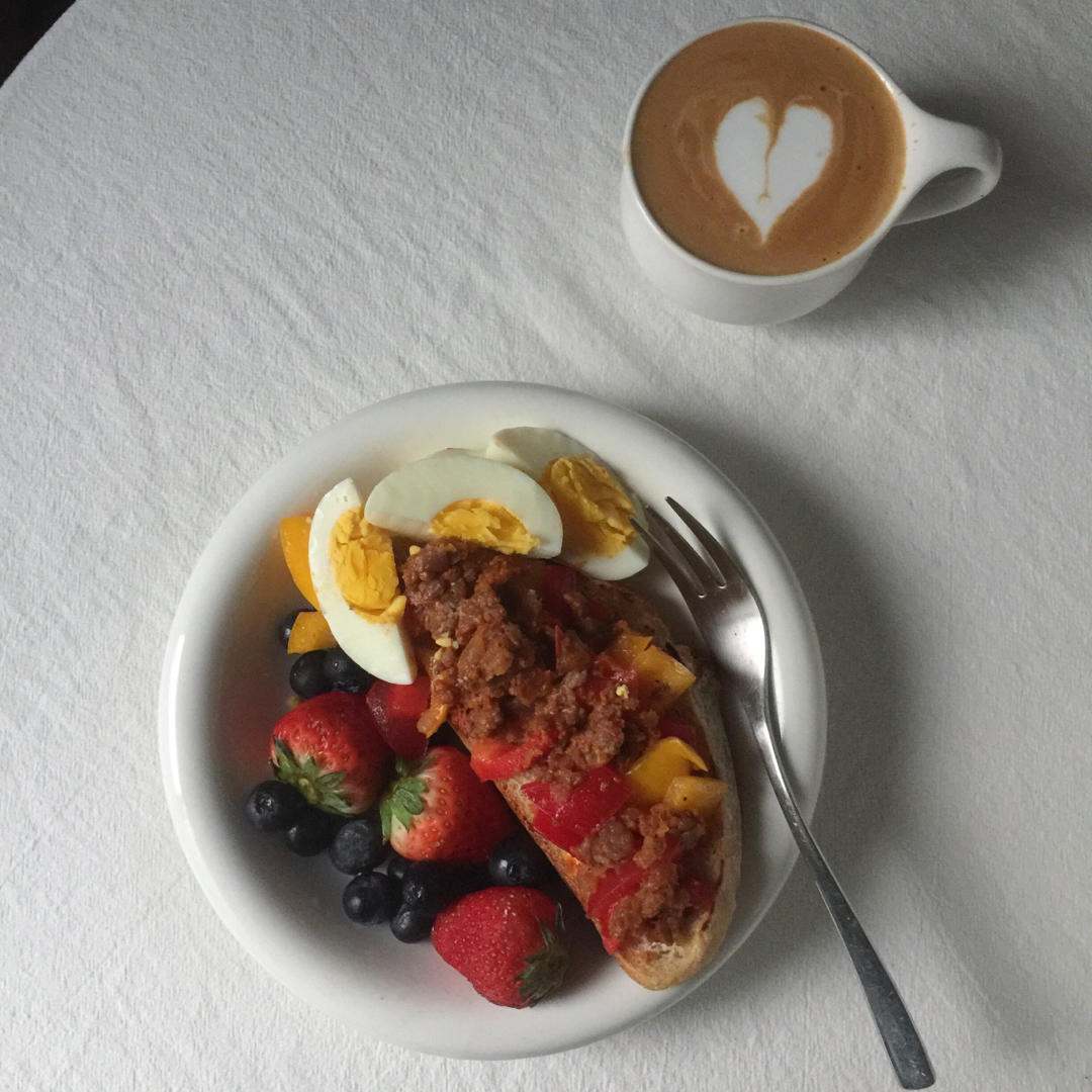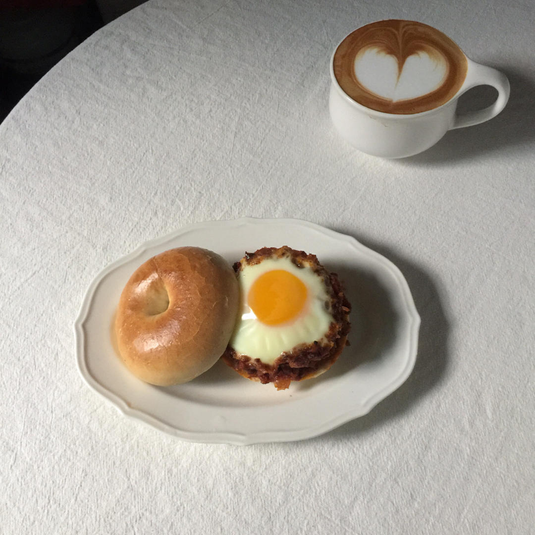 今天吃肉酱窝蛋贝果