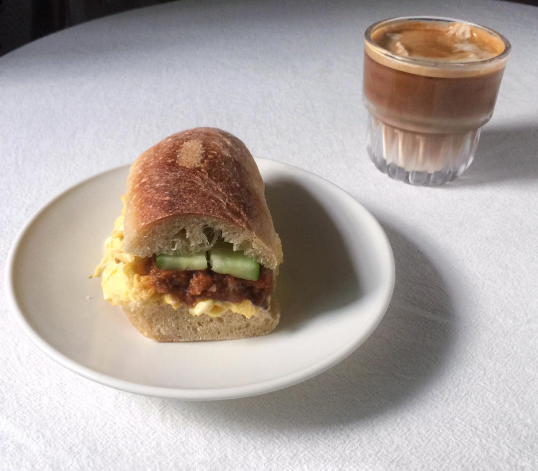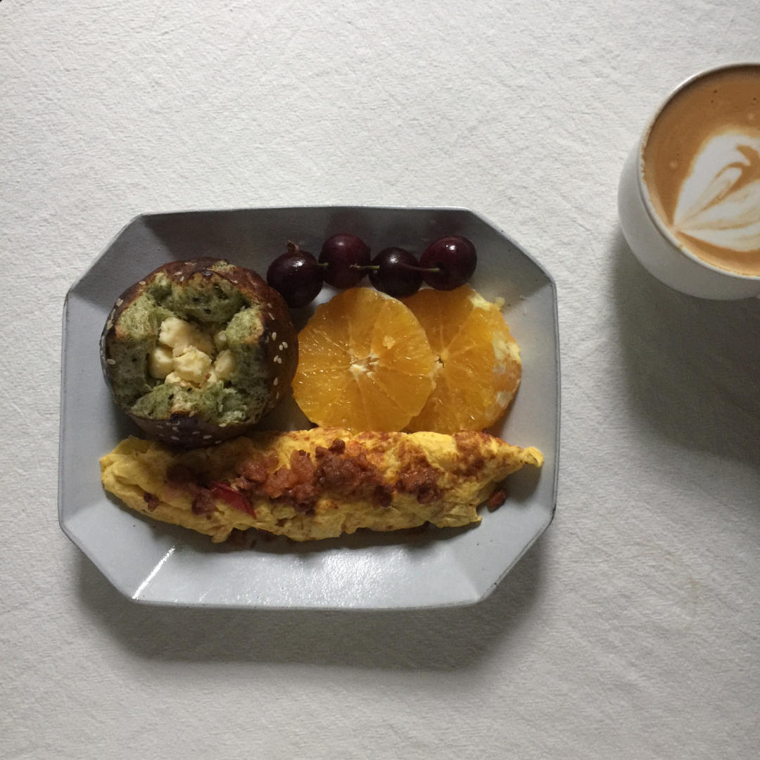 海苔芝士碱水➕失败欧姆蛋➕拿铁