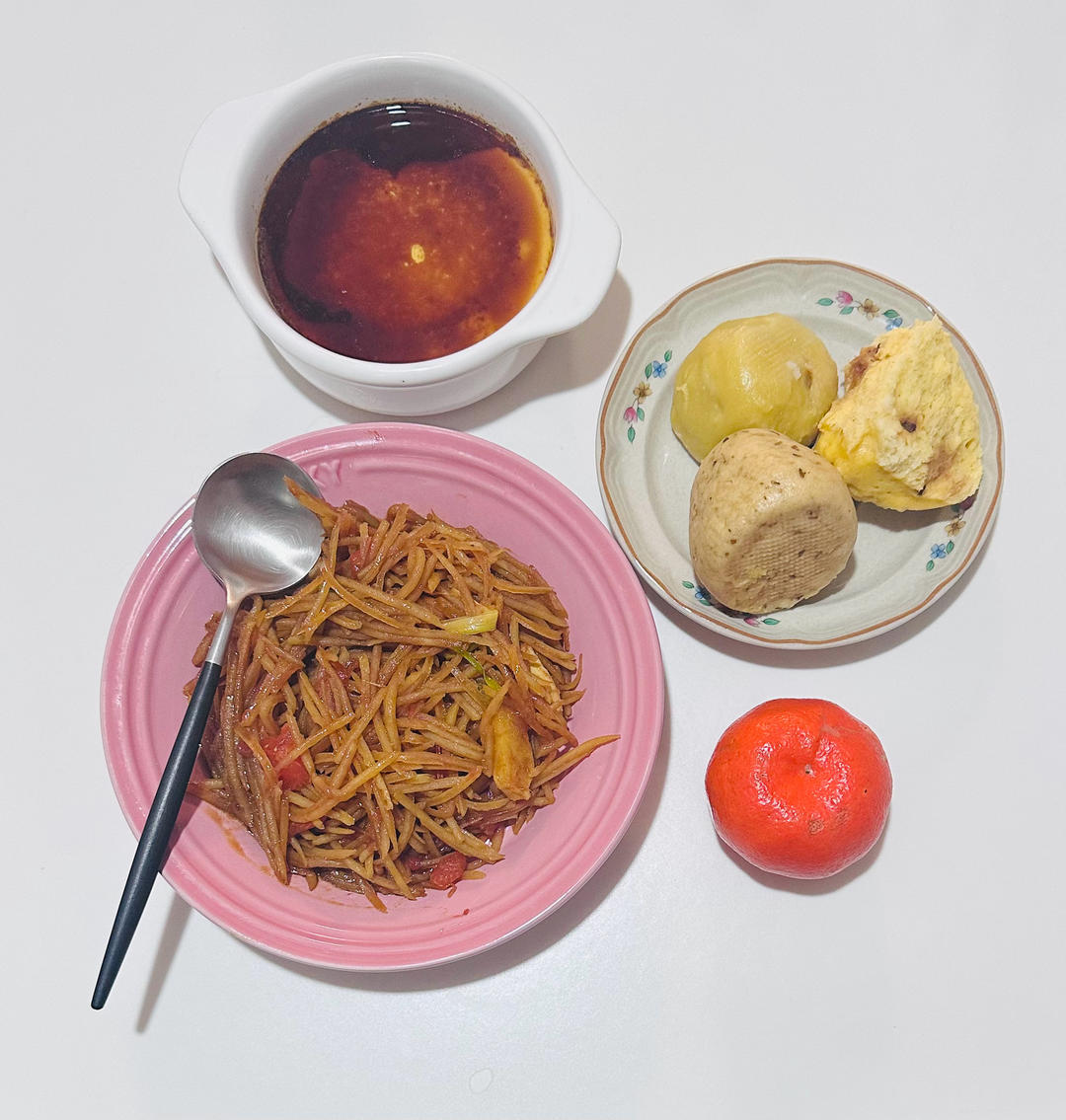 土豆丝,鸡蛋羹,桂花红糖馒头