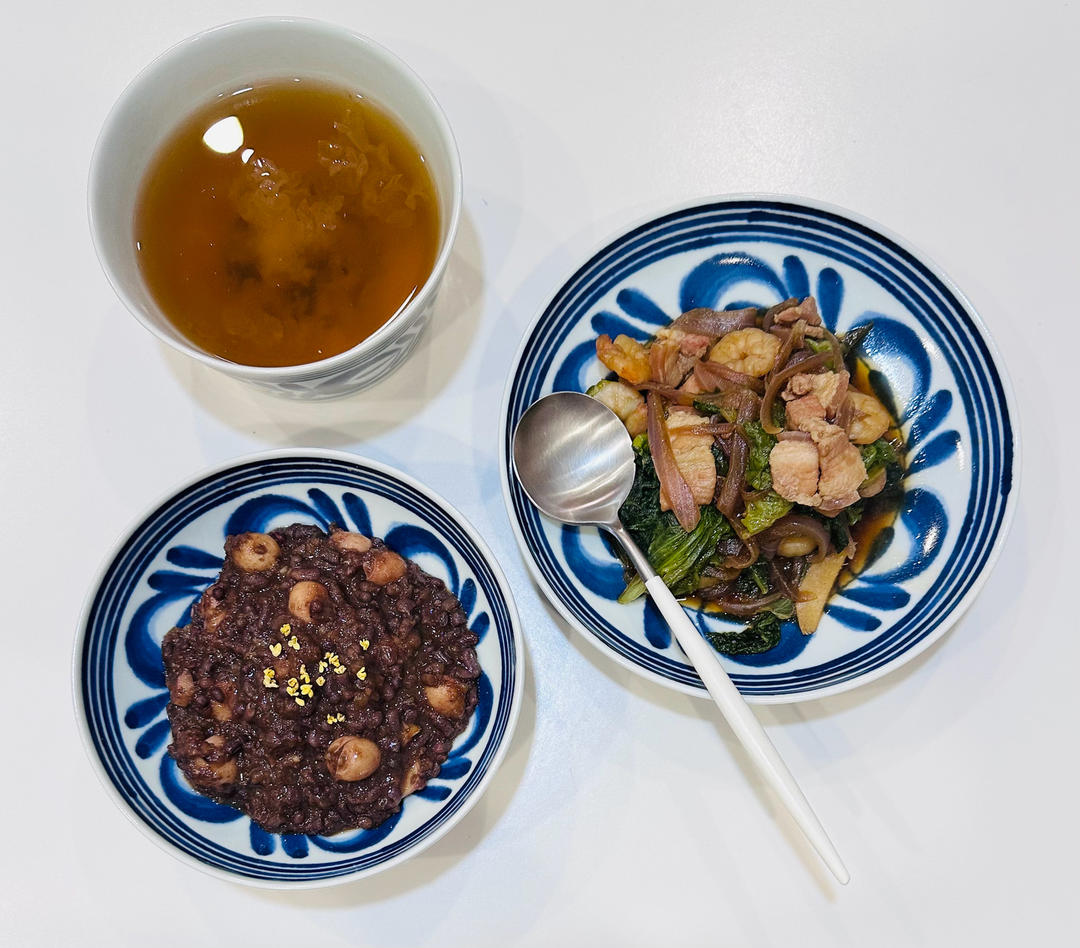 红豆莲子饭,银耳汤