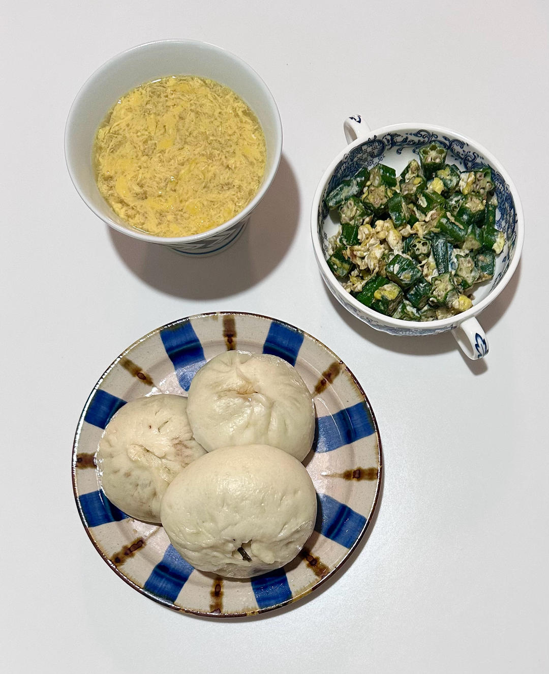 鸡蛋花,奶奶牌包子,秋葵炒蛋