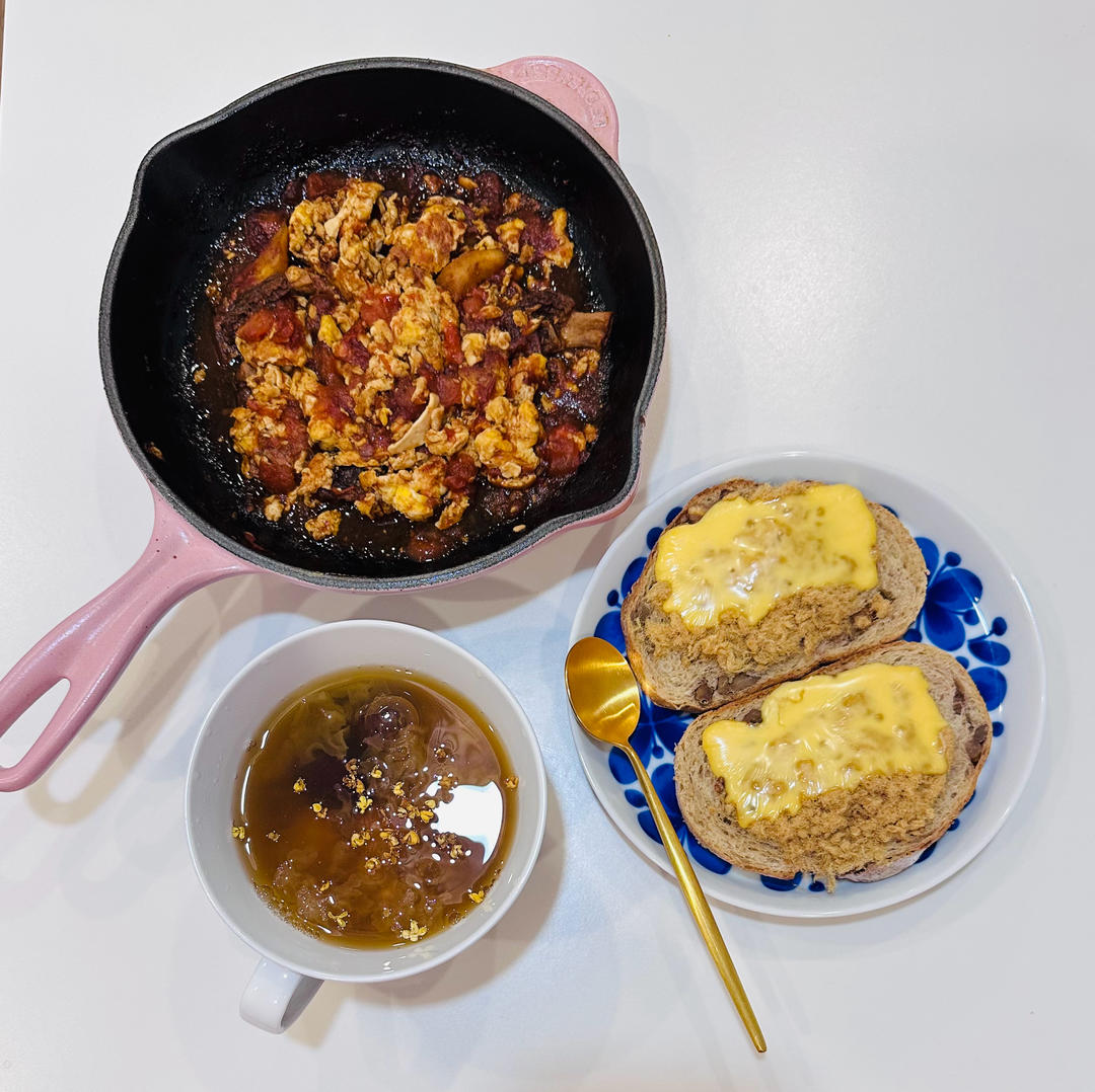 芝士吐司披萨,银耳汤