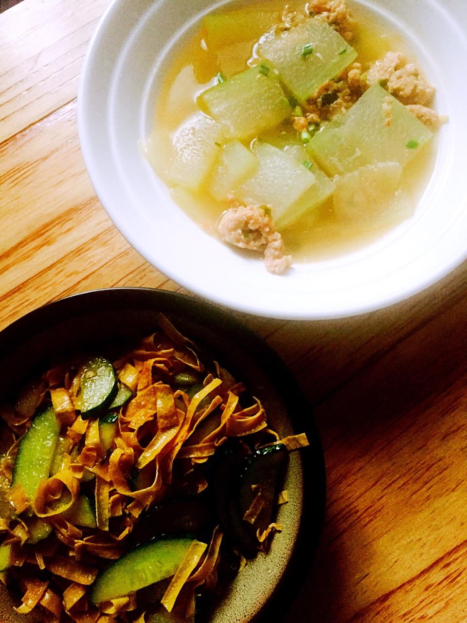 瓜片素鸡、冬瓜丸渣汤~