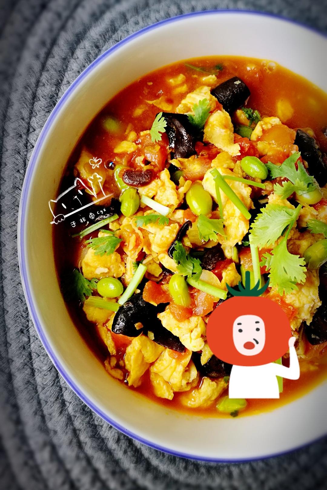 在“赛螃蟹炒番茄”的基础上,继续进行了改良,今天材料上增加了木耳和毛豆,佐料上减少了醋和番...