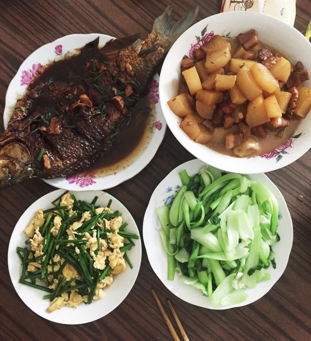 周末与老公和大宝去看望八十五岁的爷爷,为老爷子做顿饭,主打菜:红烧武昌鱼和白萝卜炖五花。爷爷吃的很高兴。简单生活,平淡是...