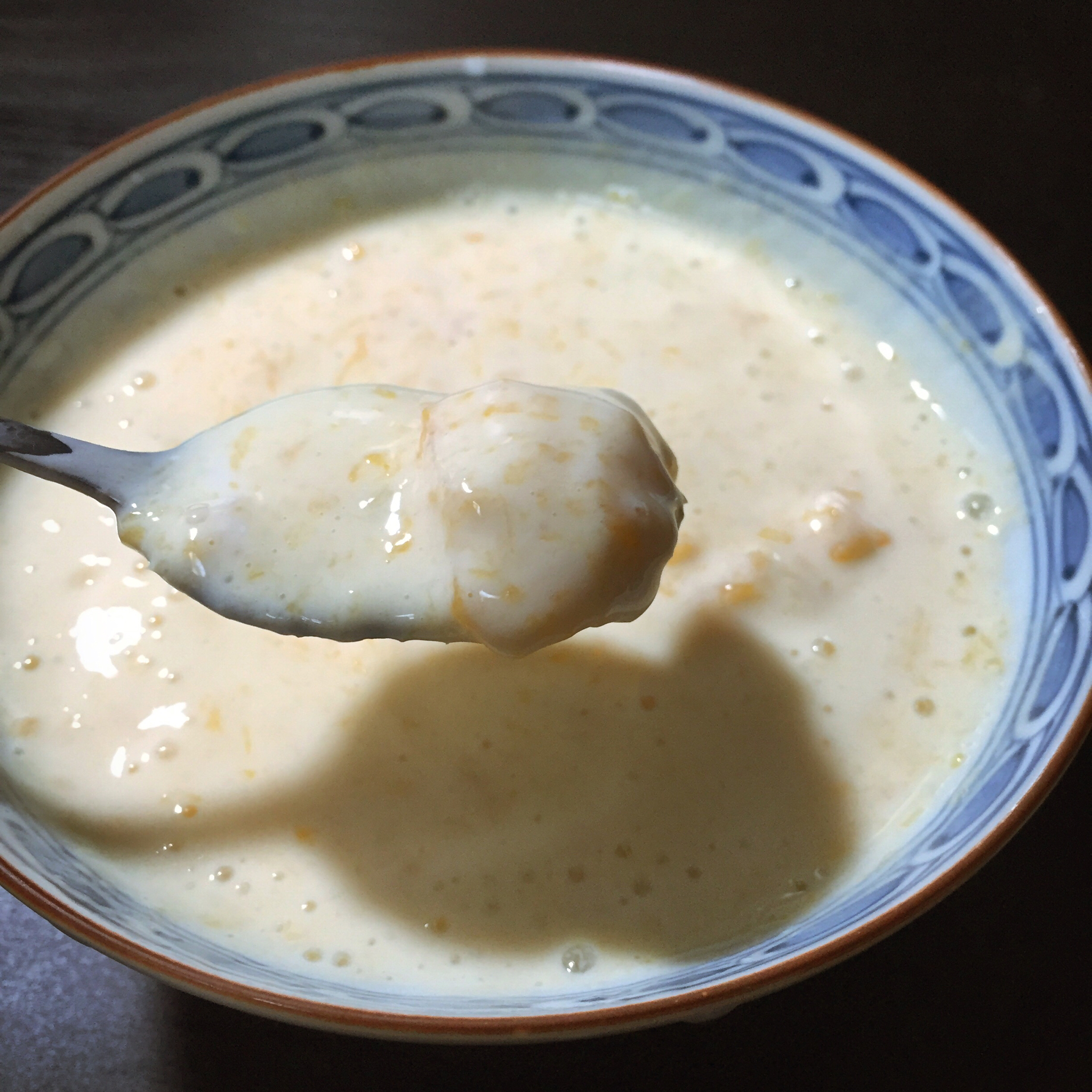 丧心病狂地用里海加芒果打的,好像还是直接放上面伴着吃好~