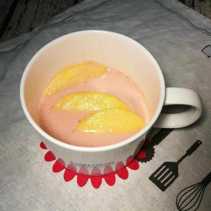 西瓜奶昔中加入黄桃片