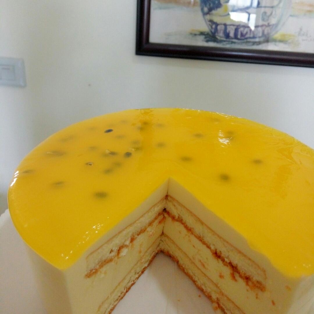 好友做的百香果慕斯!说是给女儿的生日蛋糕!超级好吃的!