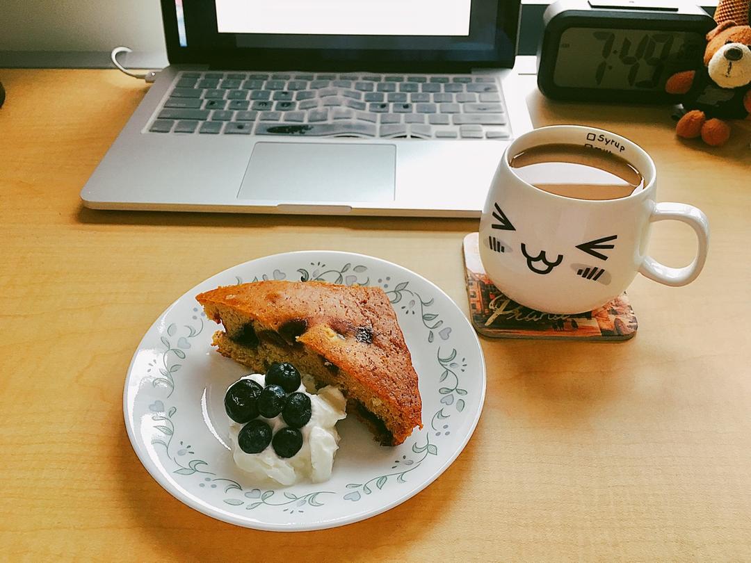 早安!早餐:vegan berries cake+fage greek yogurt+☕️。发现cake微波炉转一转好香...