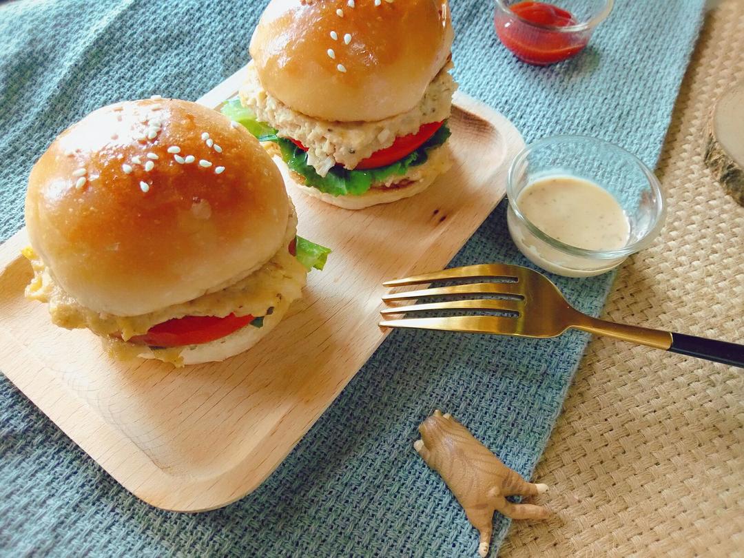 自制的鸡胸肉蔬菜小汉堡,健康,美味,营养,妈妈再也不用担心宝宝变胖啦!😜