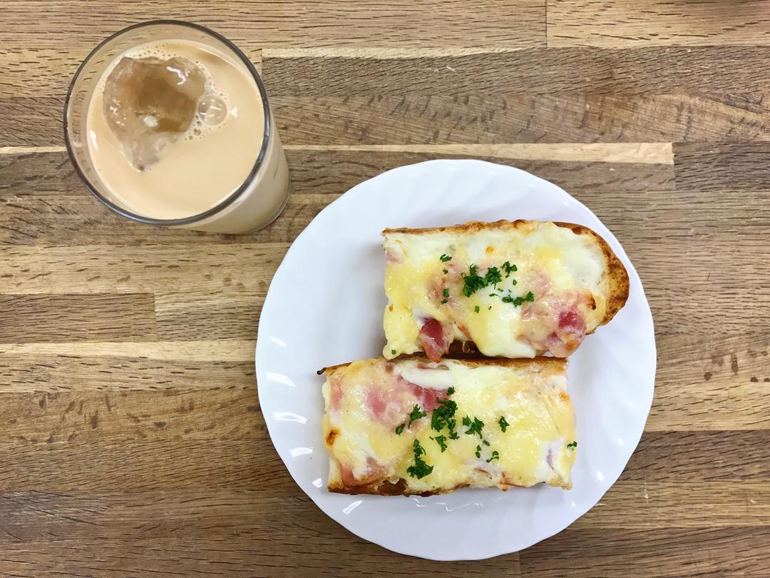 ハムとホワイトソースのタルティーヌ&アイスカフェオレ