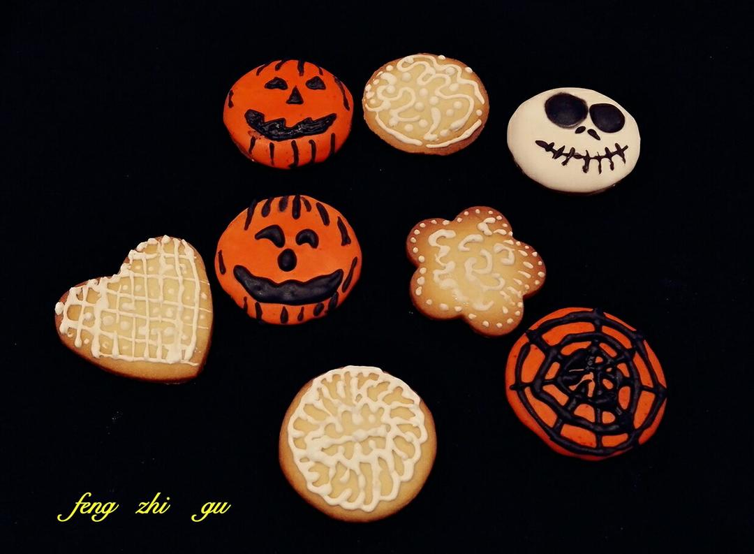 预热万圣节,第一次做糖霜饼干,完全找不到感觉,方主的方子还是很好的。顺便玩玩蕾丝,手...