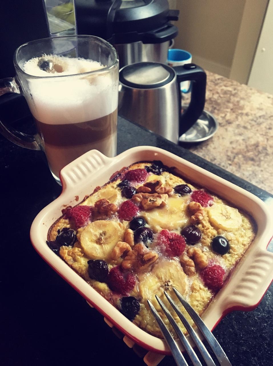 适合阴天周末的早餐~香蕉烤燕麦加上raspberry 吼吼吃啊~~