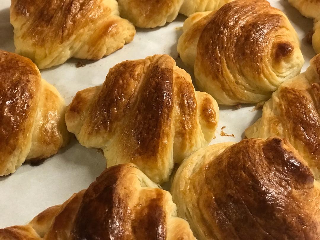 黄油有点多了,裹入的时候去掉了一些大概裹了200克,下次还是放150克应该就好了,面团有点太湿,用的俄罗斯面粉,没有揉出...