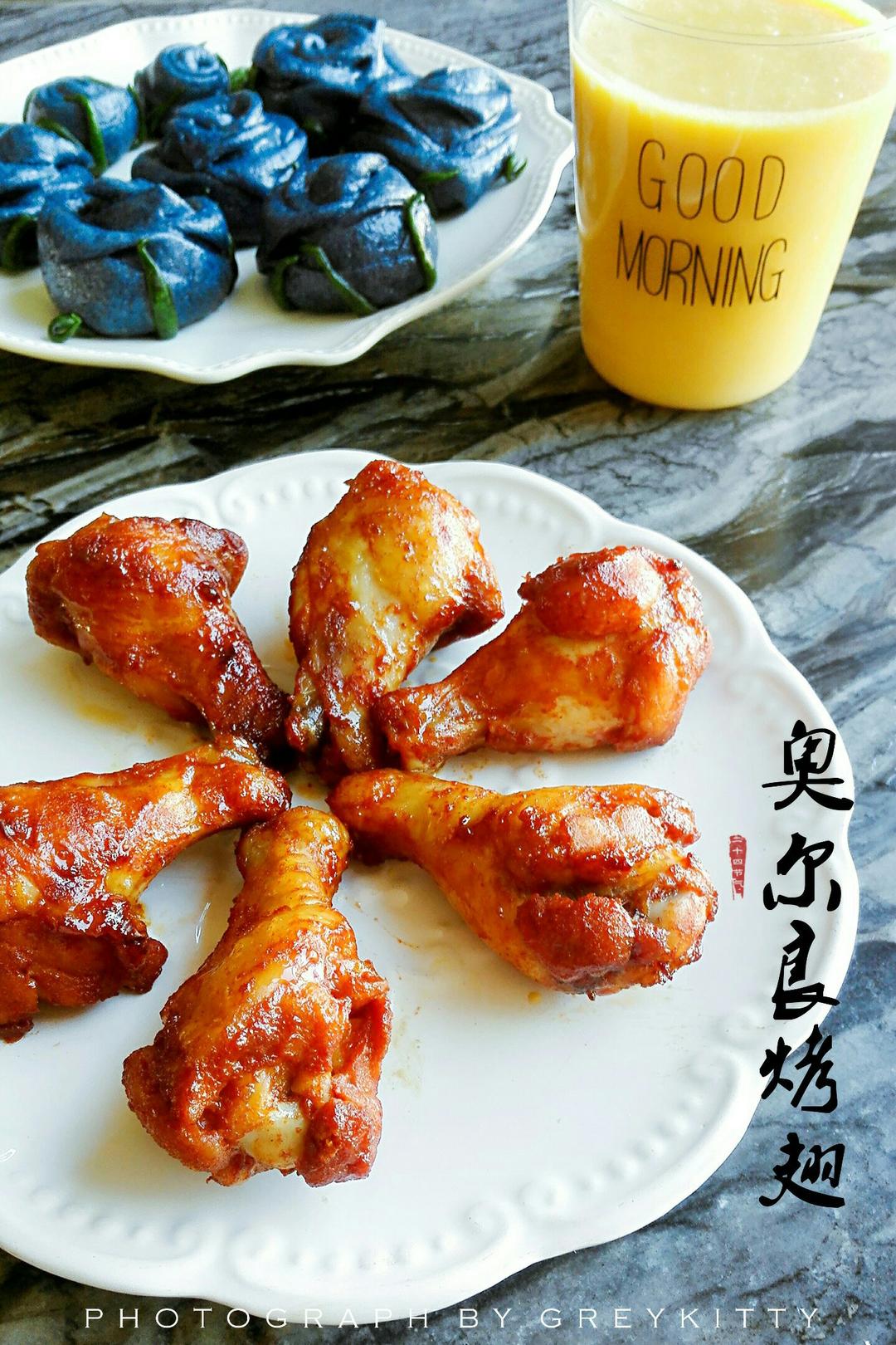 #方太爱心厨房#11月4日周六早餐:蕾丝煎饺,蝶豆花馒头,奥尔良烤翅根,南瓜...