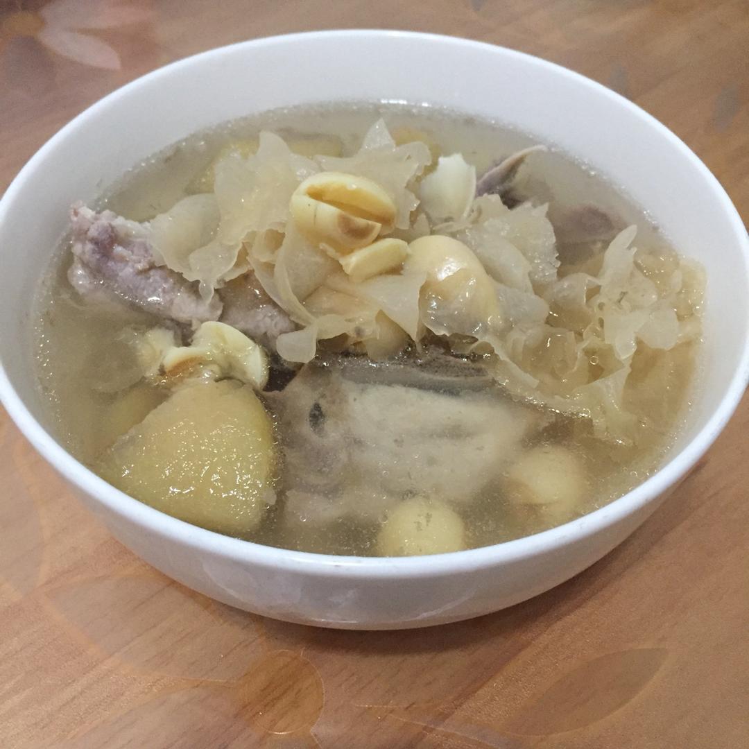 莲子百合雪耳苹果褒咸龙骨汤