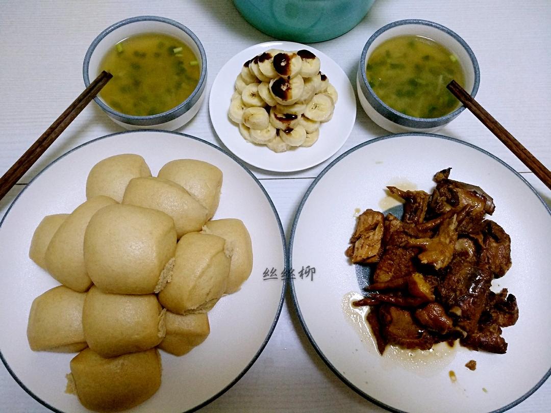 全麦馒头,卤排骨&鸡手,韭菜土...