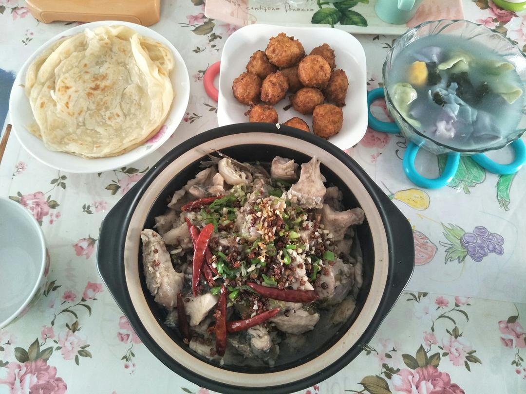 午饭上传晚了!做的酸菜鱼,没有买料自己拿泡脚花椒鱼酸菜做的,好吃,就是卖相差很多😂