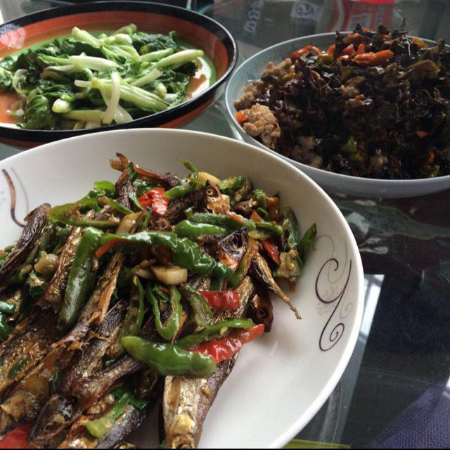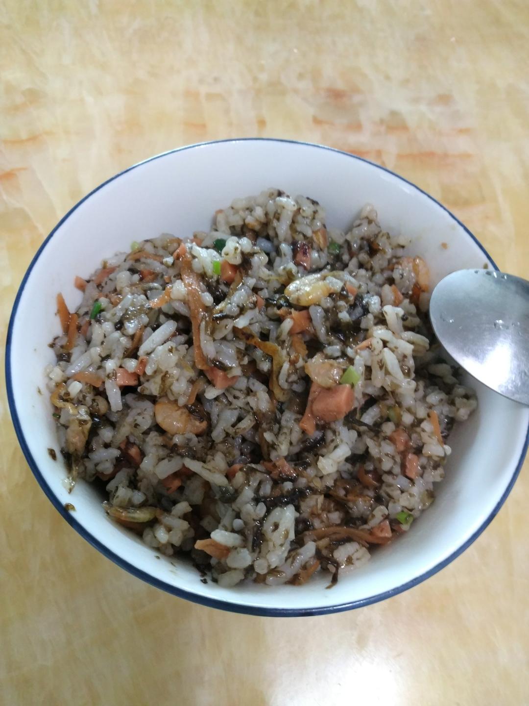 紫菜饭,滑爽,带着紫菜特有的香味。新鲜的小虾米去了头,(吃的时候不扎嘴)在油锅爆一下,放...