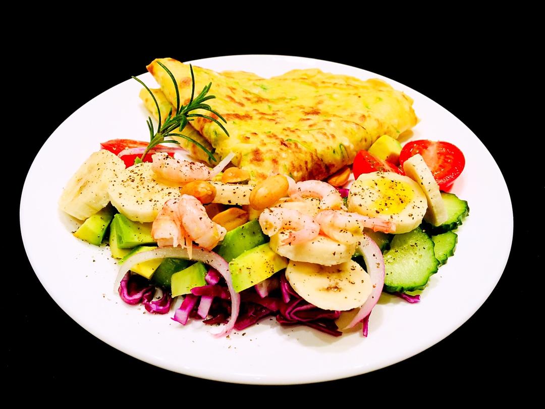 每人一份蔬果甜虾色拉+西葫芦鸡蛋饼