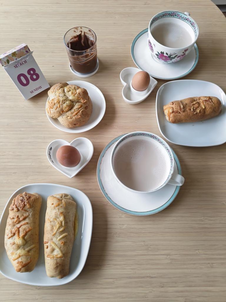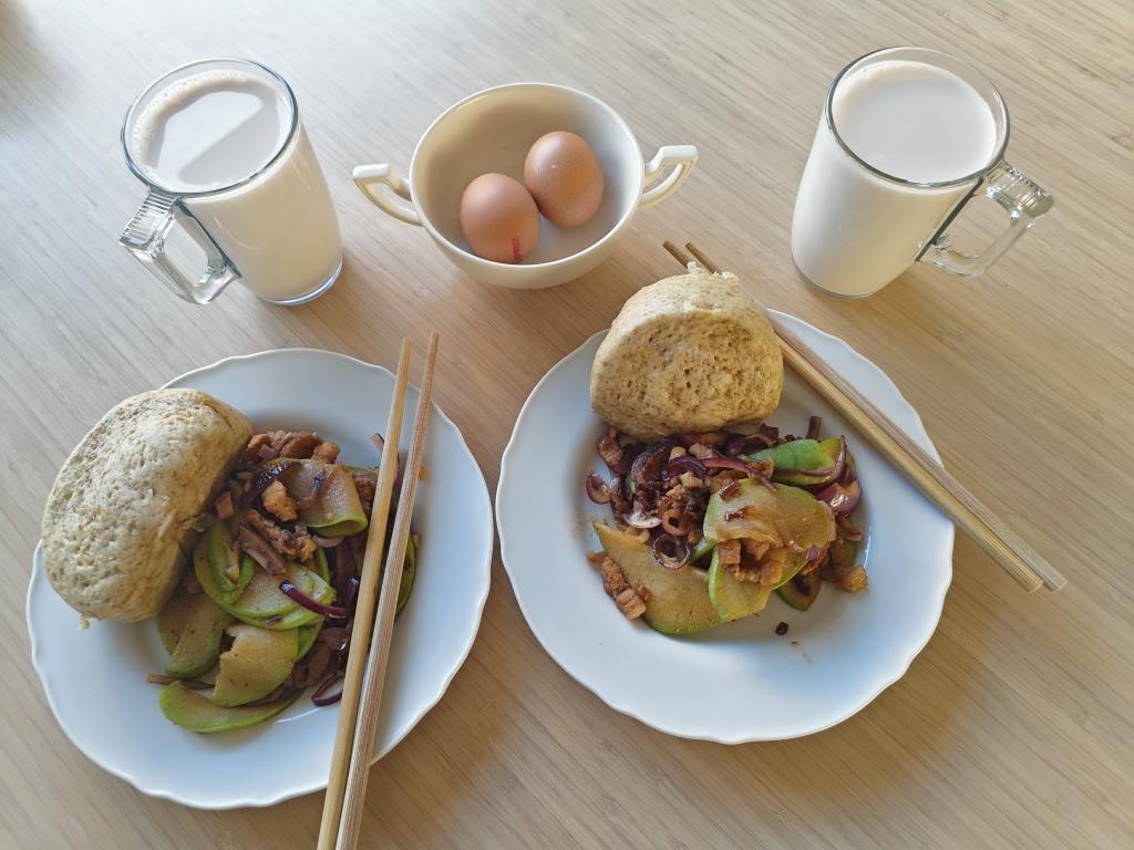 馒头配菜&鸡蛋&奶茶