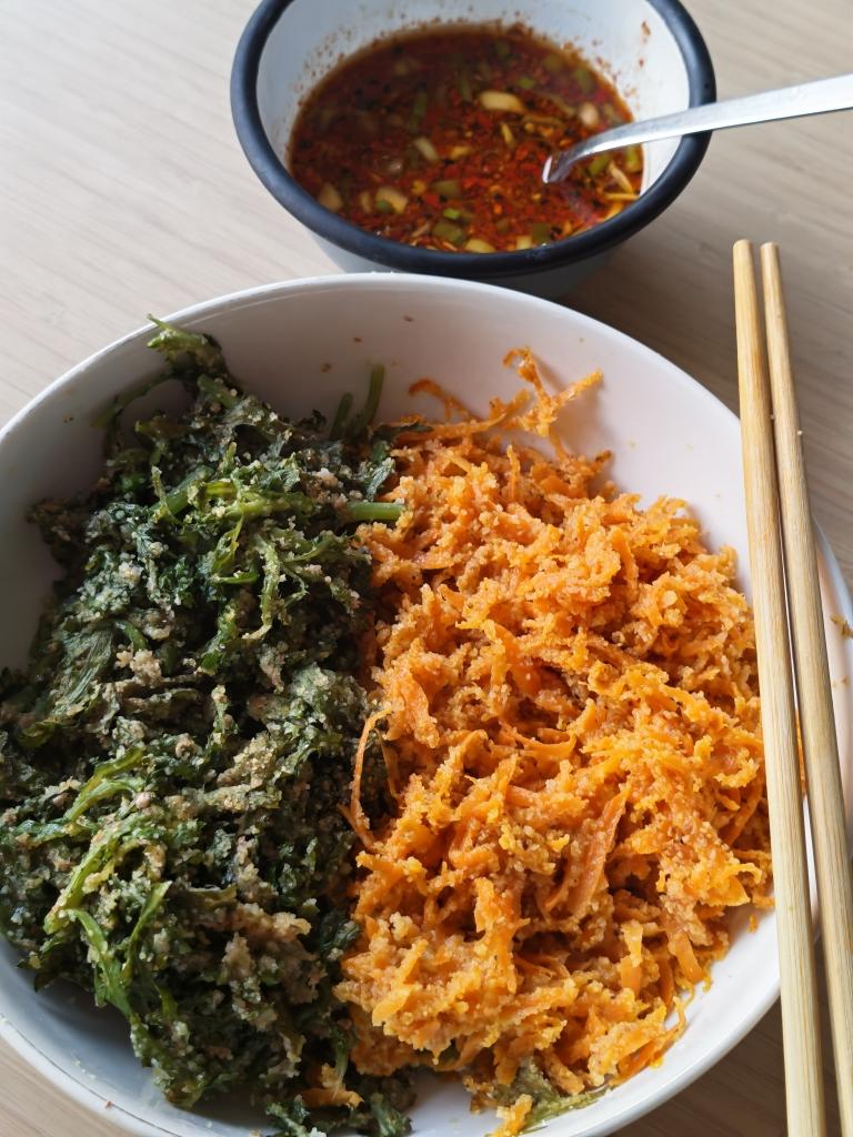 蒸茼蒿和胡萝卜