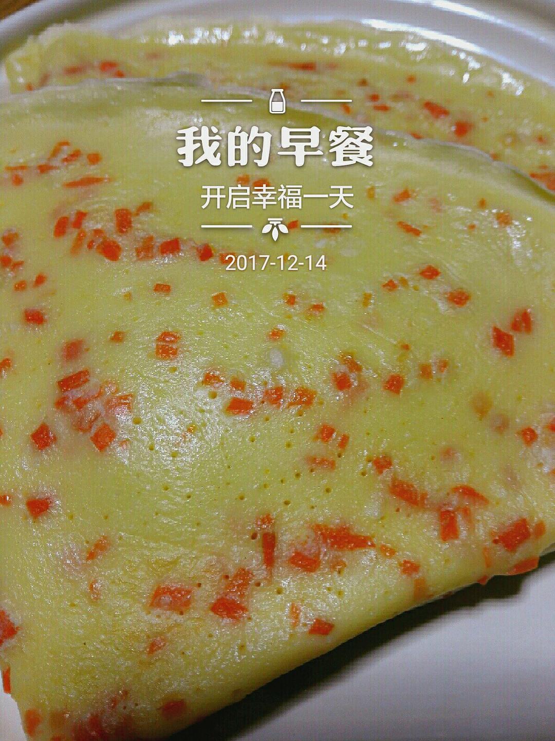 鸡蛋饼、煎年糕、杂粮粥、拌萝卜丝、橙子。