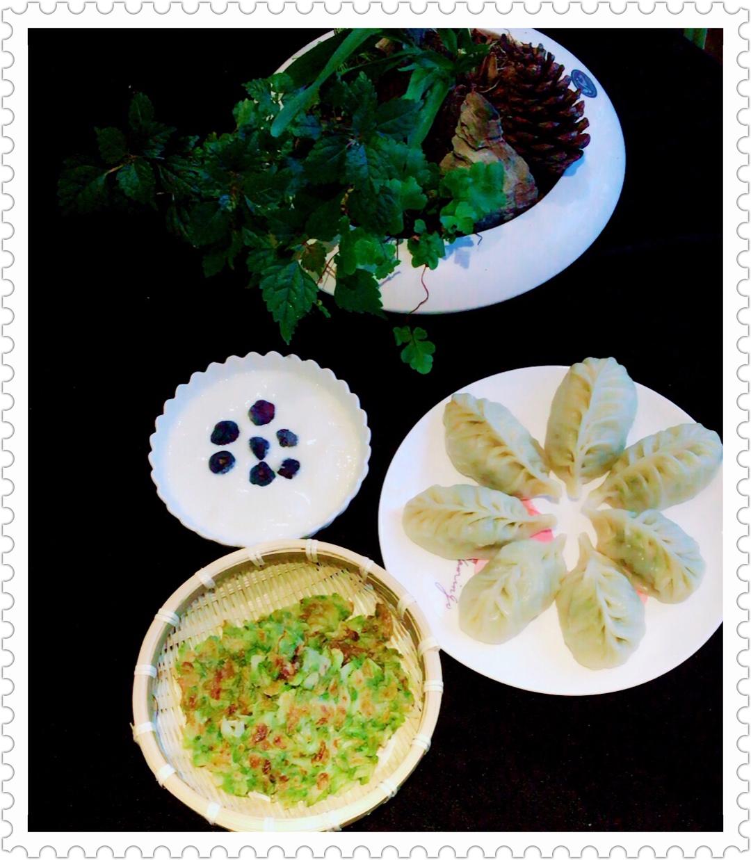 真的是一个非常好的方子,香极了。槐花煎饼🥞,茴香饺子🥟,自制的酸奶。