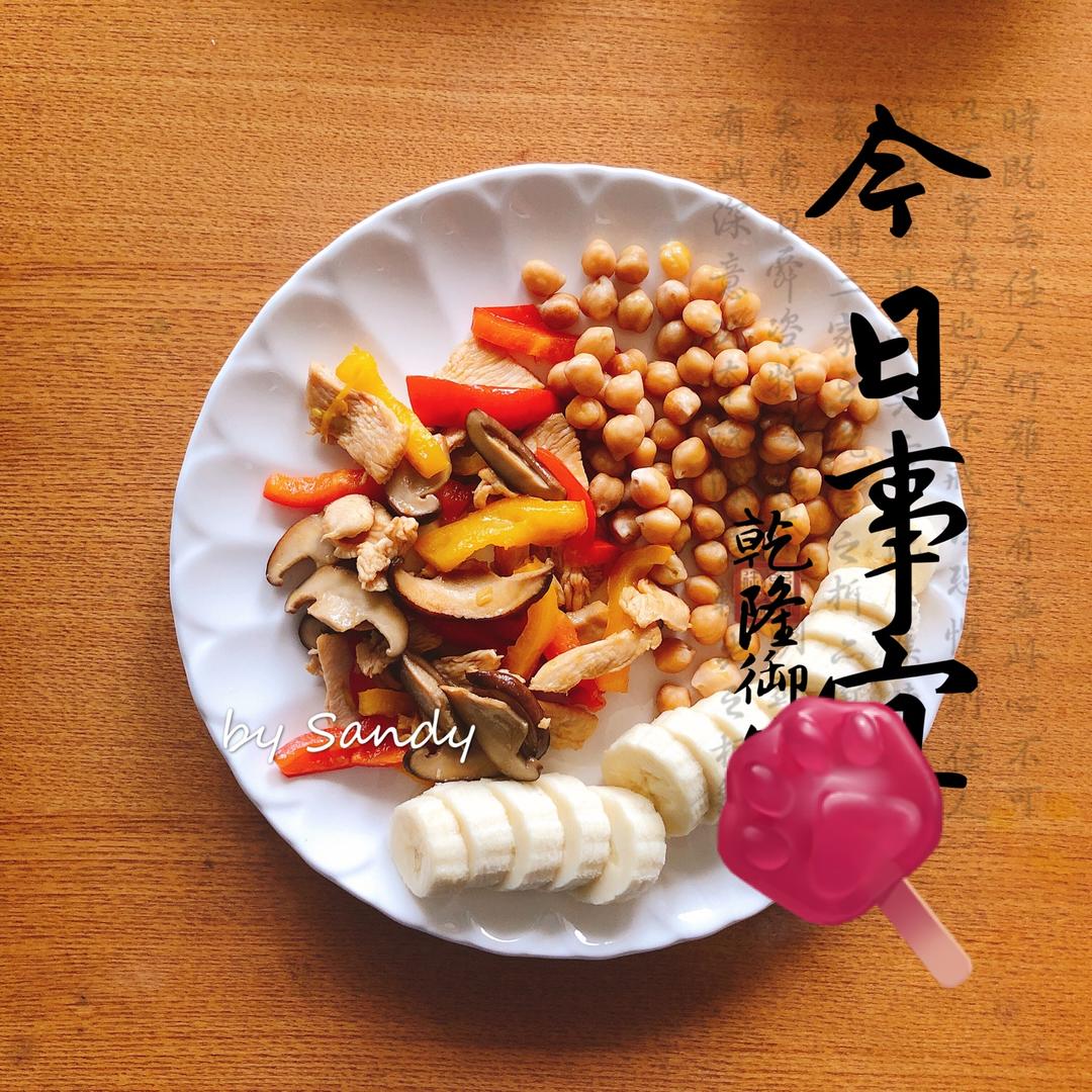 彩椒炒鸡胸肉,鹰嘴豆,香蕉
