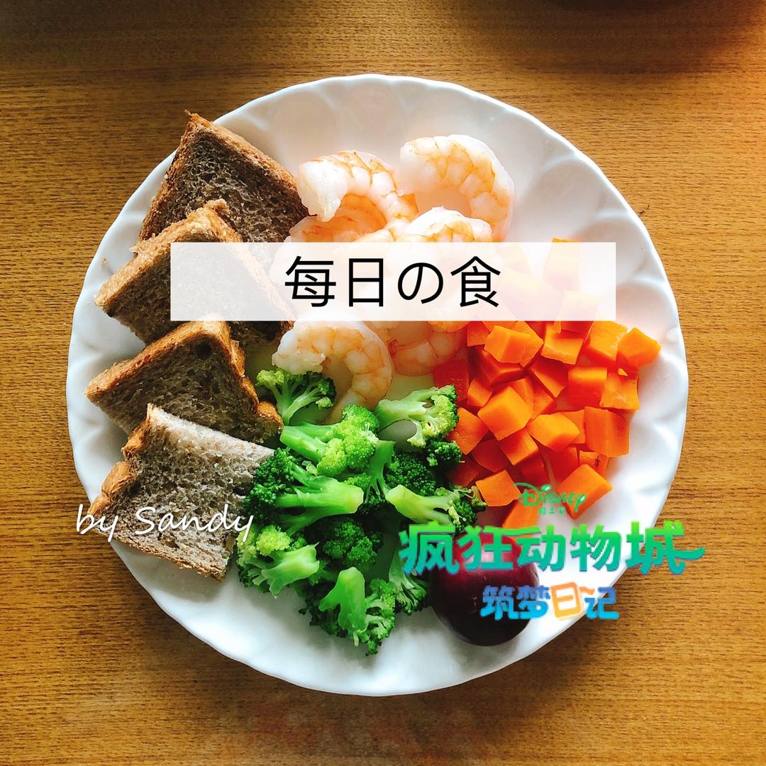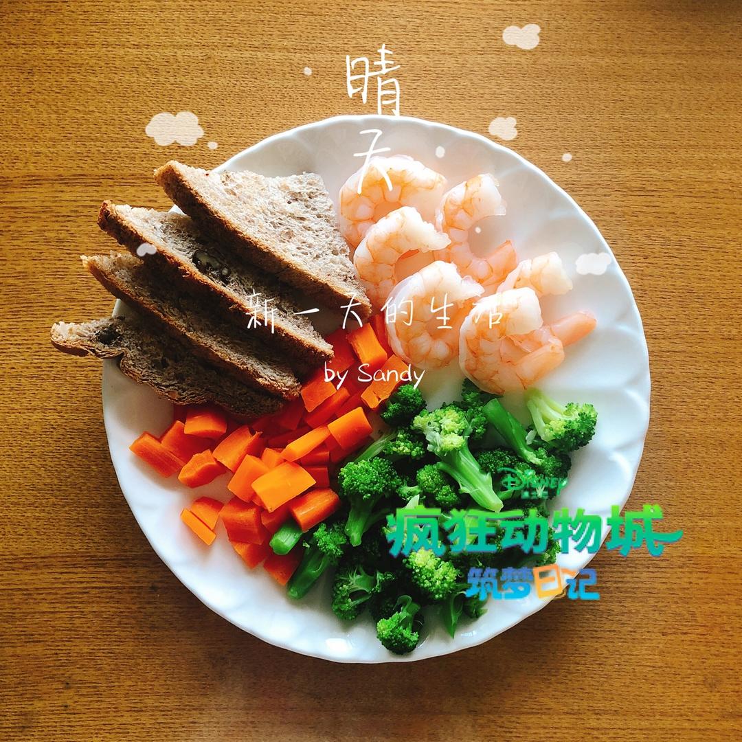 煮虾仁,水煮胡萝卜,水煮西兰花,全麦面包