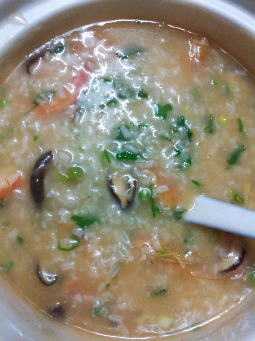 干香菇,鲜虾,虾头,虾油,豌豆,香葱,香菜~鲜鲜鲜!